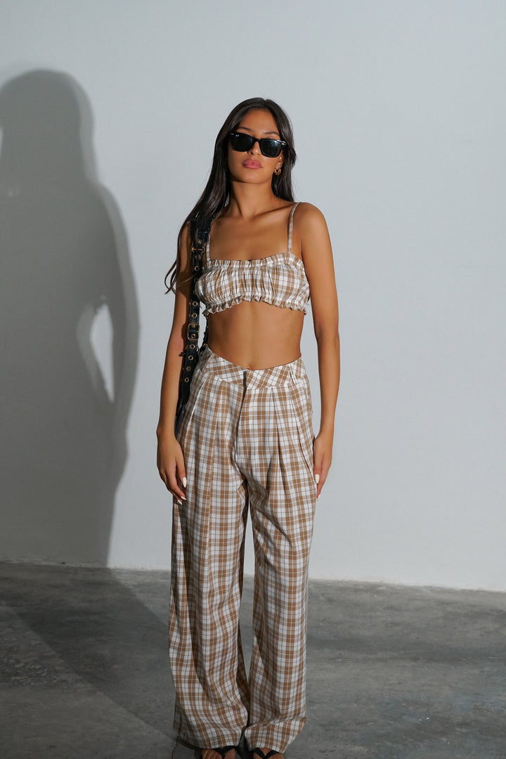 טופ כיווצים עם כתפיות עדינות | מכנסיים בגזרה מחויטת