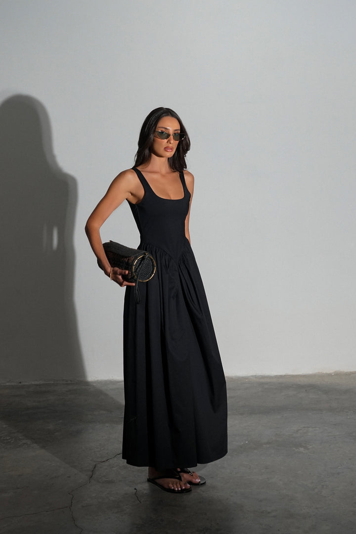 שמלת מקסי בד לייקרה מחטב בחלק העליון | בד כותנה בחלק התחתון